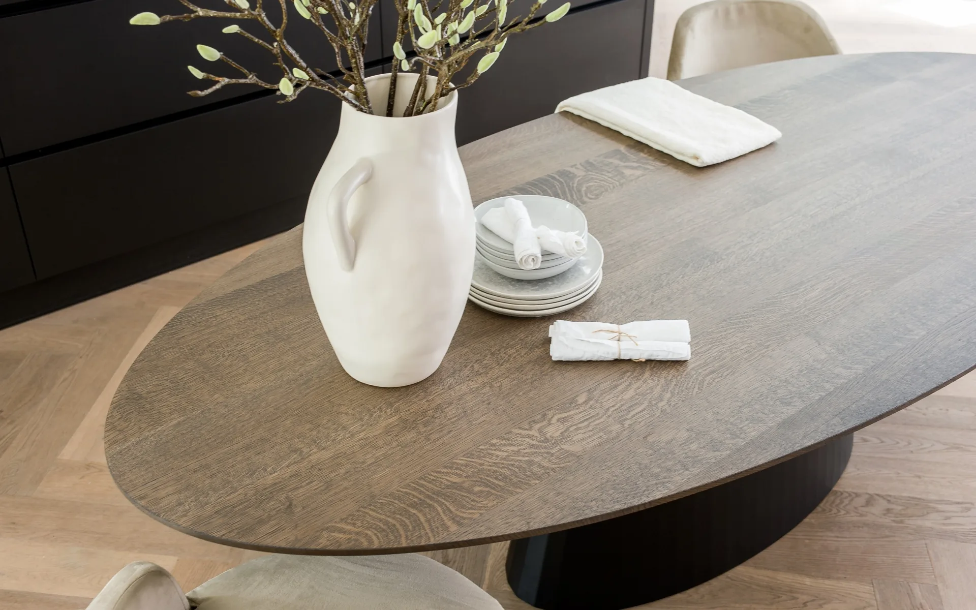 • Une table à manger ovale conviviale pour de bons repas entre amis et en famille