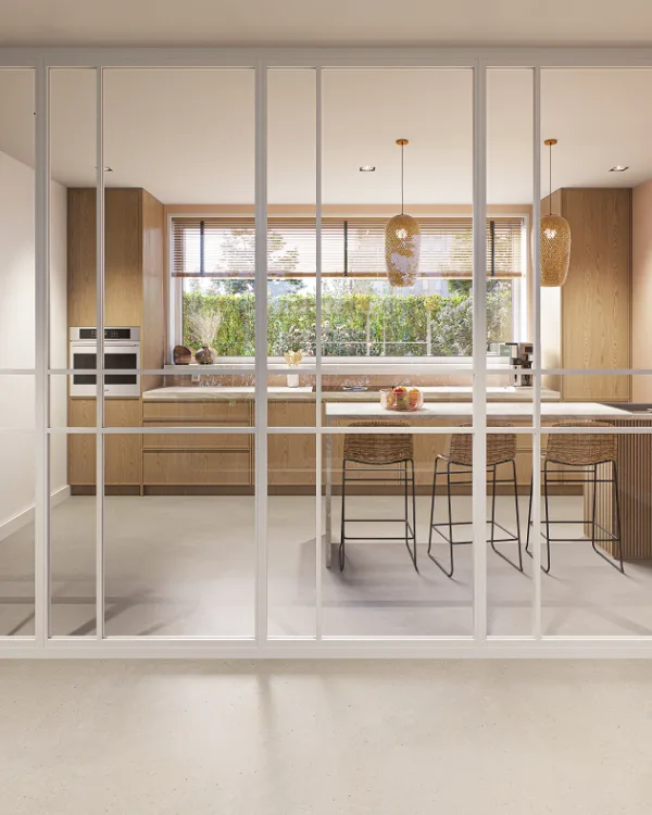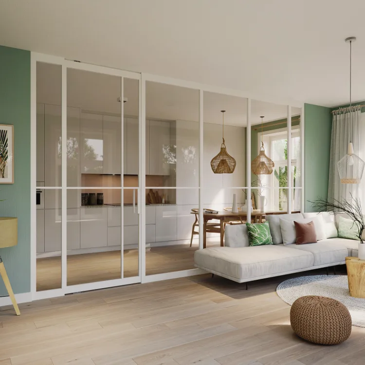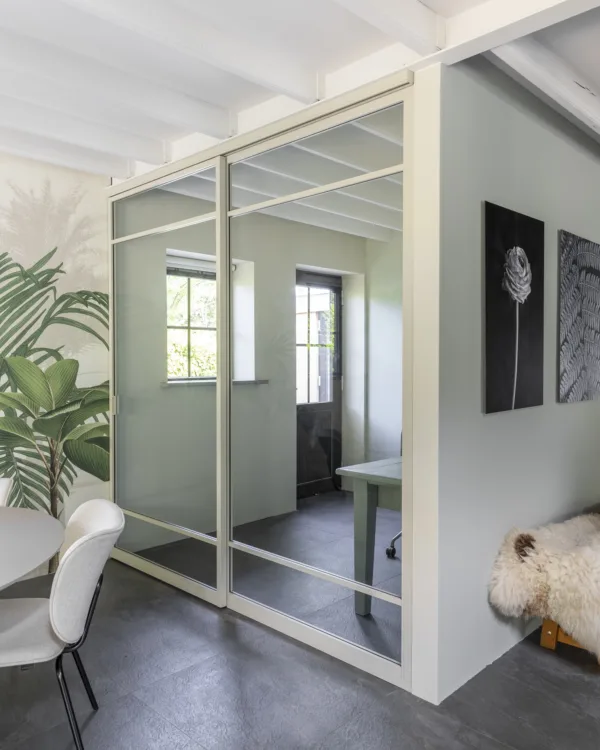 Wil je een grote ruimte opsplitsen? Of twee kamers van elkaar scheiden zonder er echt een gemetselde muur tussen te zetten? Dan is de scheidingsmuur een erg fraaie oplossing. Kies uit een scheidingsmuur met stoer zwart of subtiel wit frame voor de perfecte match met je interieur. Zo blijft het open karakter van je woning bestaan.