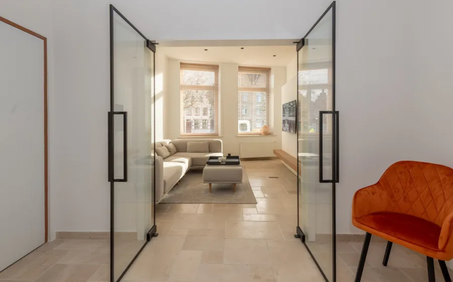 2. Jaloezieën met kanteloptie: Houten of aluminium jaloezieën kunnen worden gekanteld om licht binnen te laten terwijl de lamellen in een gesloten stand privacy bieden.