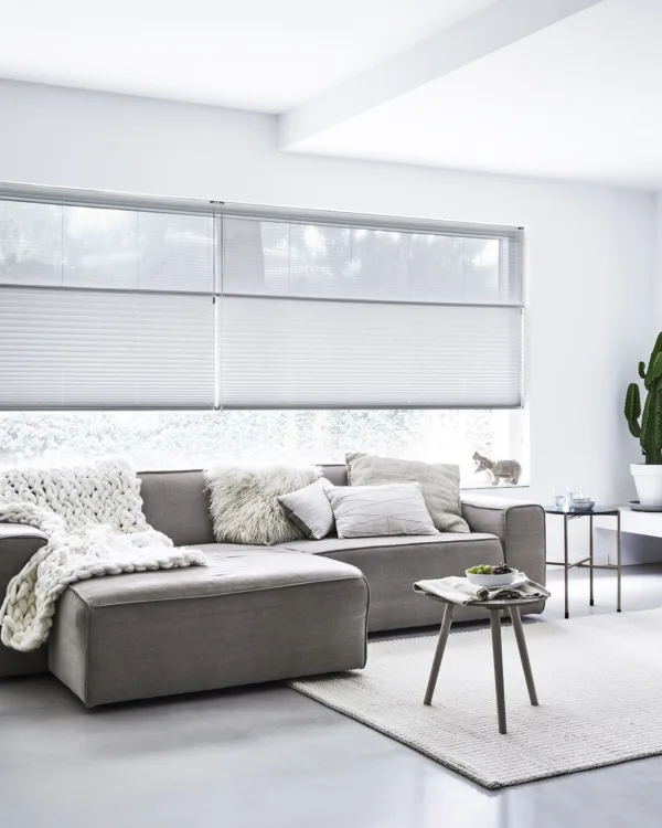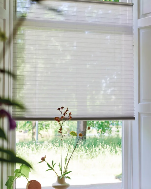 Voordat je voor plisségordijnen kiest, is het praktisch om je af te vragen of je voor plissés of voor Duette® shades moet kiezen. Duette® shades lijken erg op plisségordijnen, dus het verschil tussen die twee is vaak niet meteen duidelijk. Plissés bestaan uit één laag stof, terwijl Duette® shades uit twee lagen stof bestaan. Duette® shades hebben een holle ruimte, namelijk de honingraatstructuur.